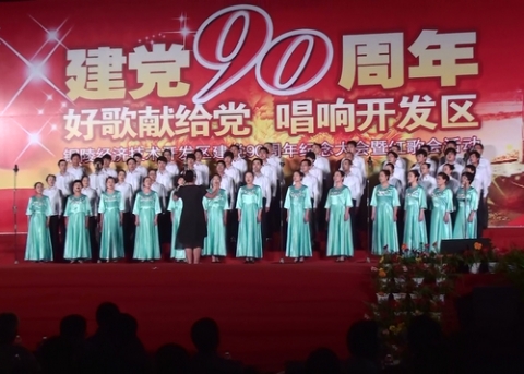 6月2日晚上的翠湖廣場,燈火璀璨,微風徐徐。銅陵經(jīng)濟技術開發(fā)區(qū)舉辦的“好歌獻給黨 唱響開發(fā)區(qū)”喜迎建黨90周年紀念大會暨紅歌會在這里隆重舉行。 天奇藍天與銅冠機械組成的聯(lián)合代表隊參加了活動,以歌曲《歌唱祖國》和《團結就是力量》抒發(fā)了企業(yè)員工對黨的深情厚愛和對銅陵經(jīng)濟技術開發(fā)區(qū)晉升國家級開發(fā)區(qū)的喜悅心情。