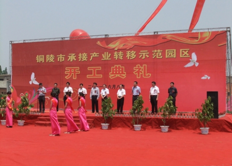 2011年6月8日上午陽光和煦、微風(fēng)徐徐,東聯(lián)鄉(xiāng)永太路施工現(xiàn)場花團(tuán)錦簇,彩旗飄揚。銅陵市承接產(chǎn)業(yè)轉(zhuǎn)移示范園區(qū)工程建設(shè)開工奠基儀式在這里隆重舉行。