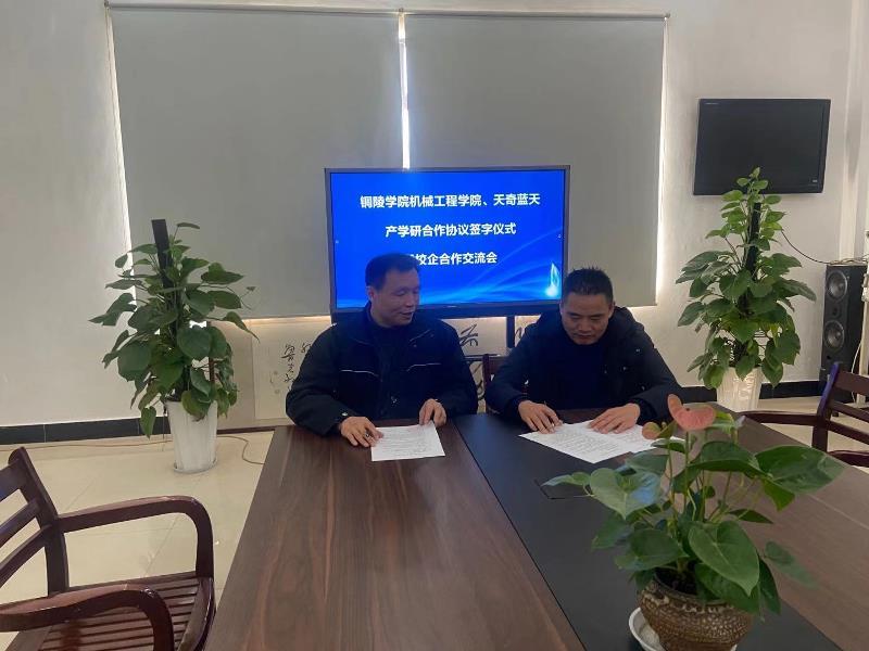 2020年12月15日上午,銅陵學院機械工程學院與我公司簽署戰(zhàn)略合作協(xié)議儀式在綜合樓一樓會議室隆重舉行。出席儀式有天奇藍天總經(jīng)理章愛前、財務部長丁繼剛、技術總工程師范守廣、技術部長吳光強、及綜合部部長施樂勤等,銅陵學院機械工程學院王涇文院長,夏兆清書記等出席戰(zhàn)略合作協(xié)議簽約儀式。 會上,天奇藍天公司章總代表公司向各位校領導的到來表示熱烈的歡迎,并介紹了我公司生產(chǎn)經(jīng)營情況。他希望校企雙方根據(jù)戰(zhàn)略合作協(xié)議,加快開展實質(zhì)性、規(guī)范化、系統(tǒng)化的合作步伐,通過相互交流,通過產(chǎn)學研深度融合,實現(xiàn)雙方事業(yè)邁上新臺階。 銅陵學院機械工程學院王院長首先代表學院對天奇藍天公司邀請和支持表示感謝。他在講話中指出,愿意推進與天奇藍天公司的深度合作,開展科產(chǎn)業(yè)的相互合作,共同推進經(jīng)濟社會的發(fā)展。 會后,天奇藍天公司章總和銅陵學院機械工程學院王院長簽署了產(chǎn)學研合作協(xié)議, 本次成功簽約標志著我公司與銅陵學院機械工程學院進入深度合作的階段,未來將在產(chǎn)、學、研等各方面共同創(chuàng)新發(fā)展。 |