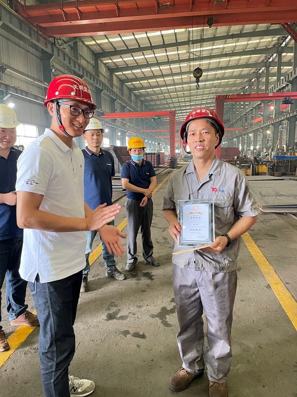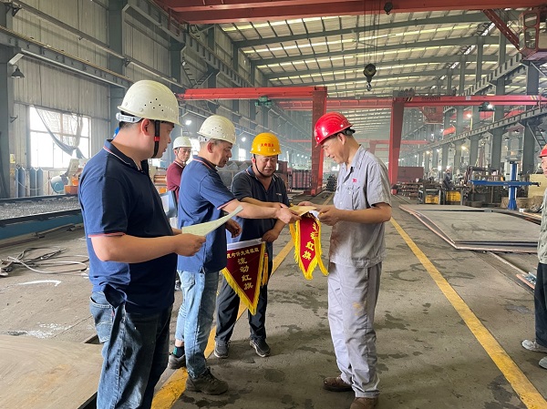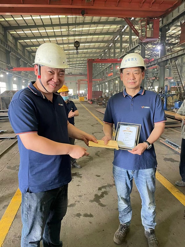 6月2日上午11時(shí),天奇藍(lán)天公司在生產(chǎn)現(xiàn)場(chǎng)召開(kāi)了一場(chǎng)表彰大會(huì)。 首先,由公司總經(jīng)理助理施樂(lè)勤對(duì)五月份在“先進(jìn)班組”考核中優(yōu)勝的“下料車(chē)間曹軍班組”和“裝配朱長(zhǎng)生班組”授予了先進(jìn)班組流動(dòng)紅旗和獎(jiǎng)金,并對(duì)2021年受股份公司表彰的“優(yōu)秀員工”阮德明、朱風(fēng)巧及“崗位標(biāo)兵”谷昆明、姚鎮(zhèn)四名同志頒發(fā)榮譽(yù)證書(shū)和獎(jiǎng)金。 企業(yè)穩(wěn)健發(fā)展離不開(kāi)全體員工的辛勤付出,希望受表彰的優(yōu)秀員工,戒驕戒躁,發(fā)揮模范作用,在今后的工作中再接再厲、全力以赴、爭(zhēng)創(chuàng)佳績(jī)。愿和諧、互勉、共同進(jìn)步的氣氛長(zhǎng)存;讓企業(yè)文化扎根在每一位員工的心中。